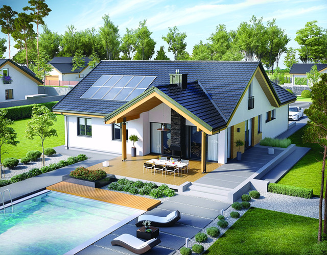 Плоска черепиця BERGAMO ідеально відповідає сучасним тенденціям будівництва, що вважають за краще мінімалізм компактних будівель з простим дахом, такий же простий, як і весь корпус.